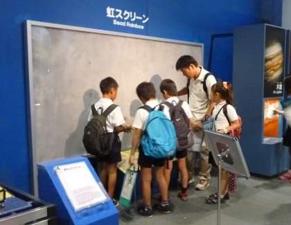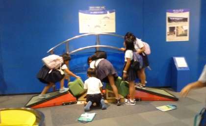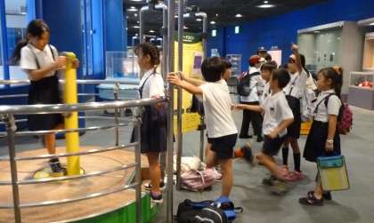 お弁当を食べた後は、グループごとにいろいろな展示を見て回りました。磁石の不思議や電気の不思議など、実際に自分たちで体験しながら、楽しんで見学していました。