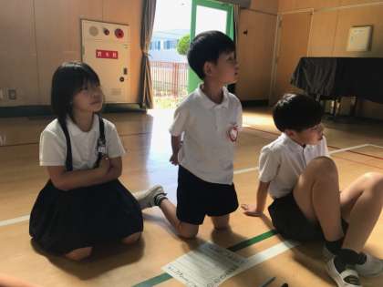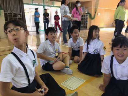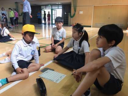 1年生も縦割り班で活動するのは2回目なので、1回目の集会よりは随分と慣れた様子で班の人たちとゲームに取り組んでいました。