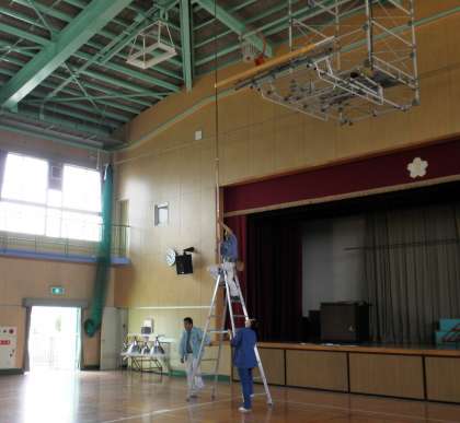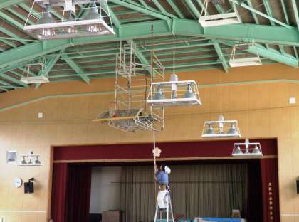 工事中だった体育館では、放送設備や照明や火災報知機などの検査が終わりました。
