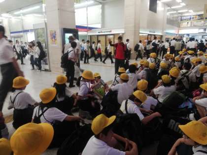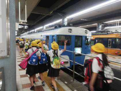 近鉄上本町駅より、修学旅行専用列車「あおぞら号」に乗り、志摩スペイン村に向けて出発しました。