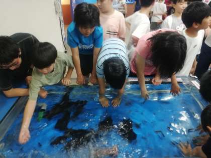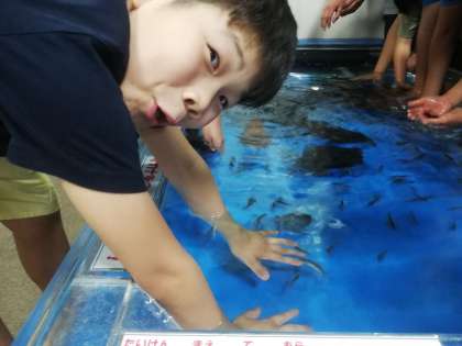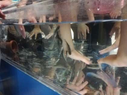 ドクターフィッシュに手の古い角質を食べてもらっています。とてもくすぐったそうです。
