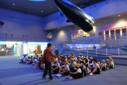 宿舎を出発し、賢島駅より鳥羽水族館へ電車で向かいました。
