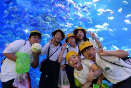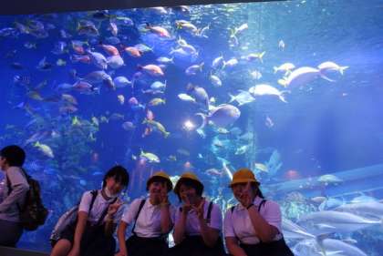 きれいな水槽の前で記念撮影です。