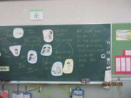 授業のあと、手や机をアルコールの綿でふいてみました。