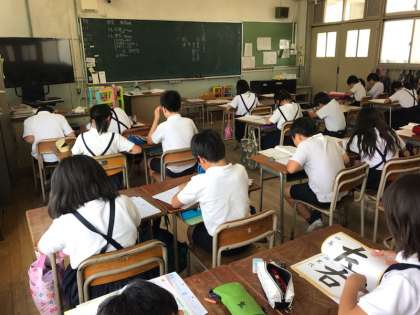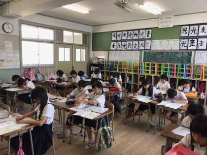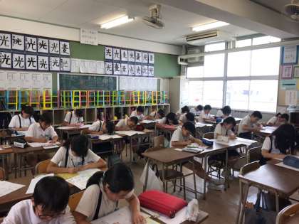 4年2組は午後から担任の先生が出張だったので、6時間目は自習として書写の学習をしていました。