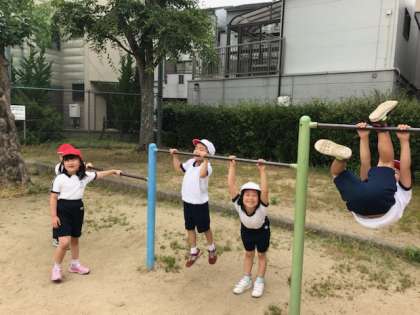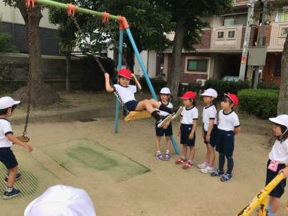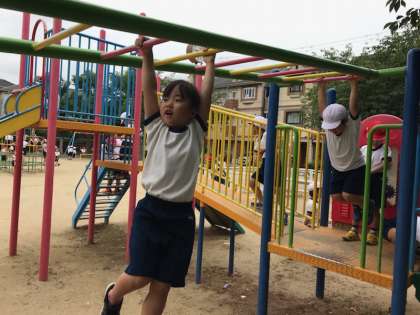 日ごろ遊びに来ることも多い公園ですが、学校の友だちと来るのはまた別の楽しみがあるようで、とても楽しそうに遊具で遊んでいました。