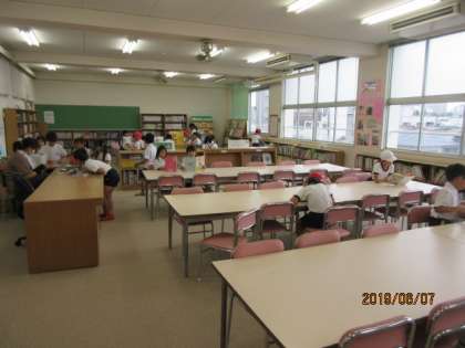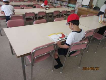 今日の図書館は、学校図書館ボランティアの春山さんに開けていただいています。今日は雨が降っているのでたくさんの児童が本を読みに来ていました。