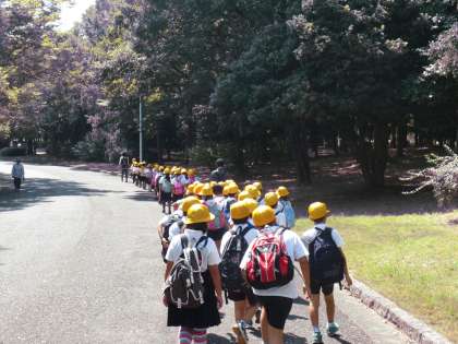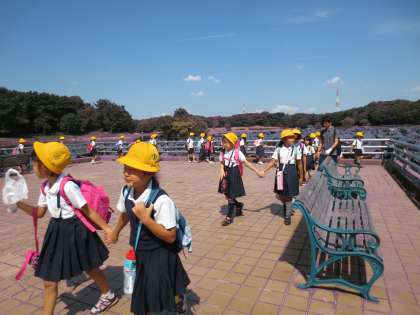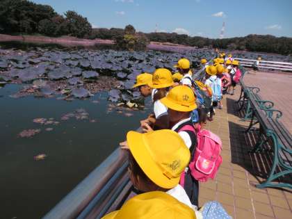 大泉池の大きなハスの葉に、子どもたちはびっくりしていました。