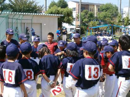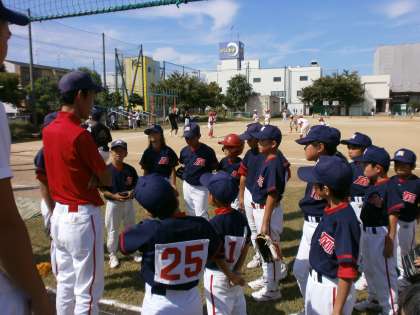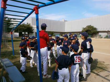 9月21日(日)巽南小学校の運動場で、生野区ジュニアソフトボールのリーグ戦が行われました。試合開始前のミーティングにもやる気を感じます。