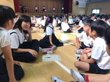一緒に悩む1年生〜6年生、悩みながらも楽しそうに相談をしていました。