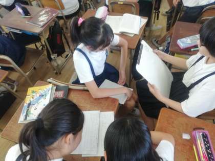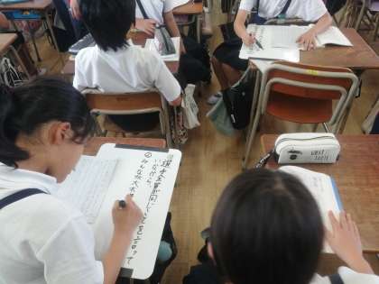 ワークシートに書いた自分の意見を交流して