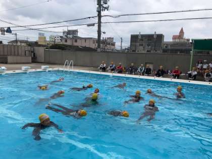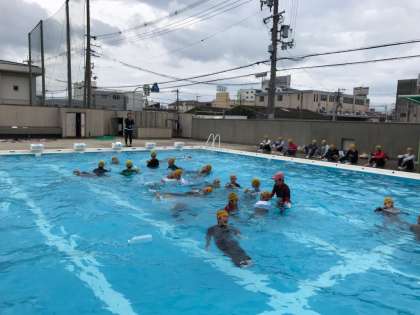 学習の最後には、身近にあるものを使って水に浮かぶ練習をしました。