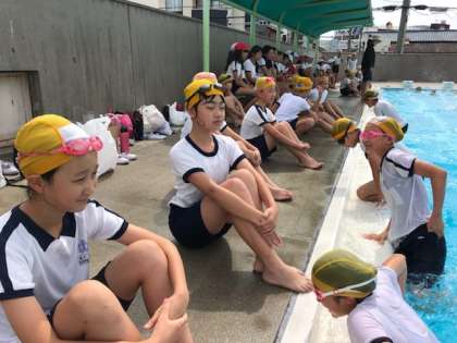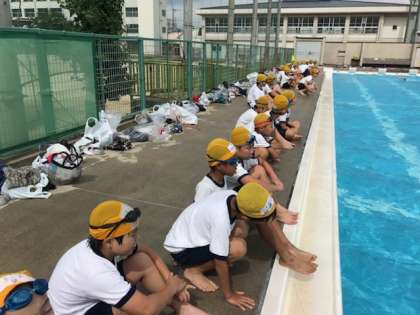 今日は5・6年生が命を守るための授業として、着衣泳をしました。