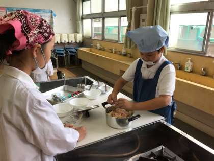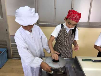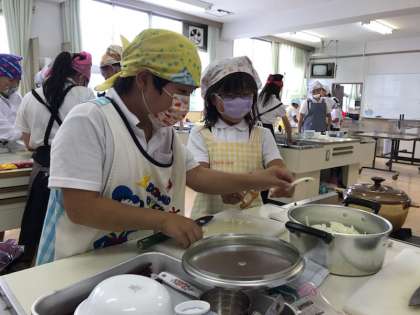 初めて包丁を使う子もいるようで、野菜を切るのにも一苦労の様子でした。