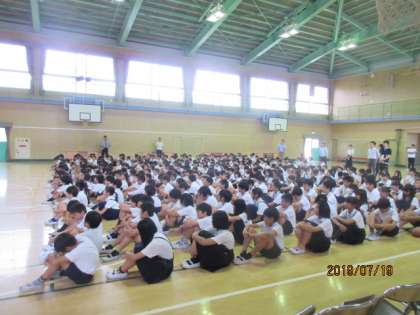 校長先生のお話は、1学期に様々なことをがんばったことをほめていただきました。