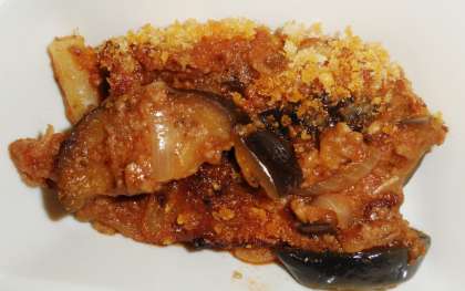 牛挽肉、豚挽肉、マカロニ、なすの入ったケチャップ味のグラタンです。
