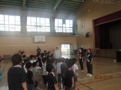 最後はみんなで「パプリカ」のダンスを踊りました。講師の先生にお礼をして終わりました。子どもたちの踊りたいエネルギー、パワー、そしてダンスを覚える吸収力に圧倒されました。とても良い体験になったと思います。