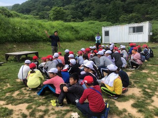 間伐実習が始まりました。まずはスタッフの方から説明を受けました。そして森の中へ入っていきました。