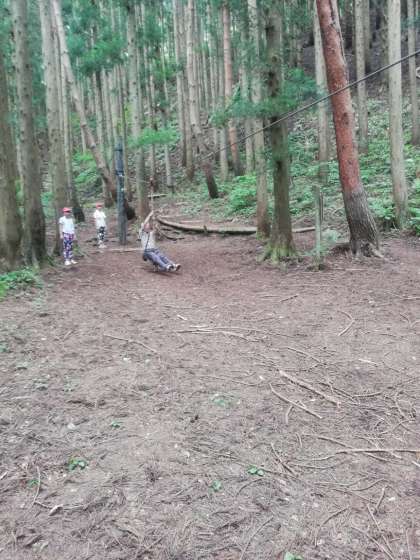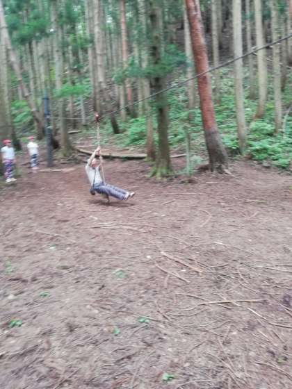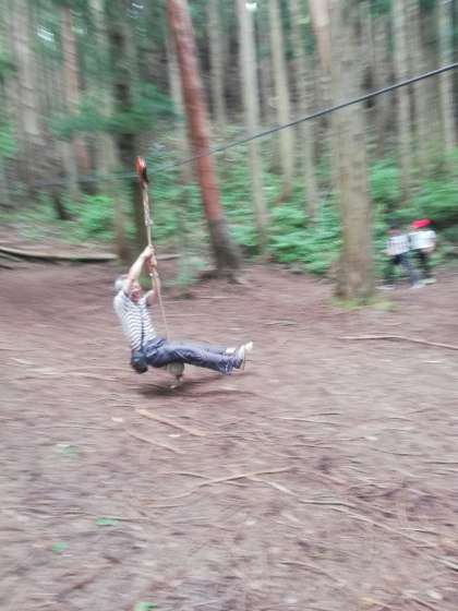 誰でしょう? なんと!?校長先生が笑顔でロープにつかまって楽しんでいます。