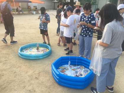 ボール入れ、つりゲーム、ジュースの販売です。たくさんの子どもたち、地域の方々が参加されています。そして、たくさんのPTAの方々が、子ども達の笑顔のためにがんばっています。