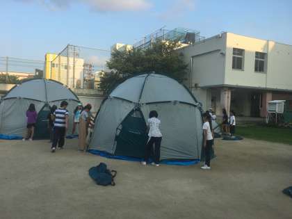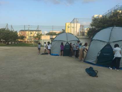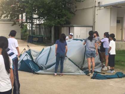 朝になりました。自分たちで立てたテントを自分たちで片づけます。