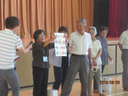 老人クラブの藤原会長よりお話がありました。そして、児童よりうちわを渡したお礼に、色合わせをいただきました。遊び方の説明もしていただきました。大切に使います。ありがとうございました。