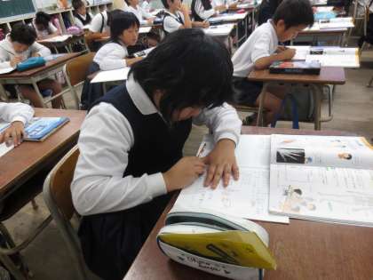 人の体で「ほねと関節」について学習をしていました。学習する姿勢がとてもよかったです。