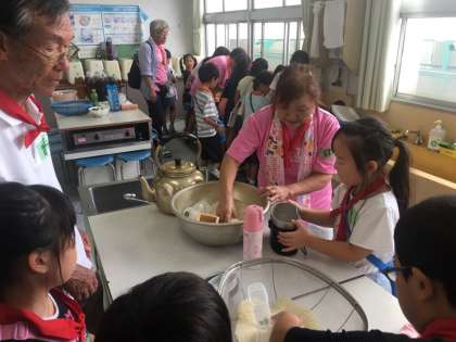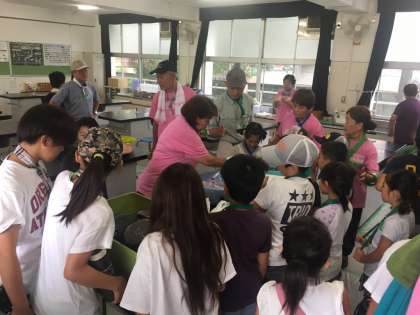 DVDを観終わった後は、家庭科室でお米を研いで、飯盒に入れて水を入れる作業と、野菜等のカレーの具とルーをビニル袋に入れる作業をしました。