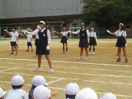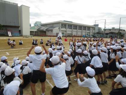 白組も応援の練習をしています。ウエーブでみんなの気持ちが一つになっていました。