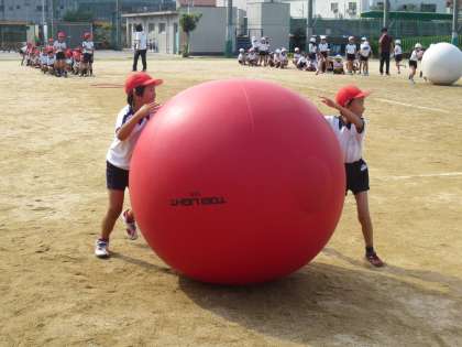 二人で転ばせていくのは難しそう・・・でも、しっかりとした動きで上手に運んでいました。