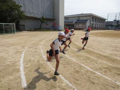 個人走の練習をしています。スタートからセパレートコースで走ります。コーナーが少し走りにくそうです。