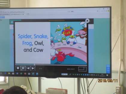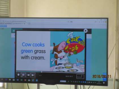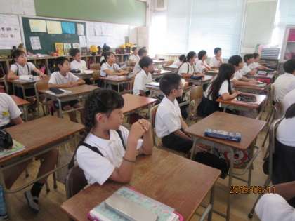 英語の文章が出てきて発音します。そして、絵から内容を理解します。みんな意欲的に取り組んでいます。