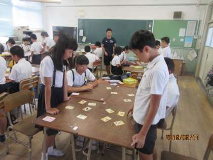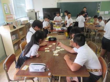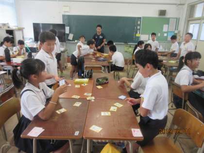 5年1組の様子です。英語かるたをしています。