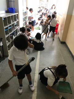 清掃時間は、全児童が教室やそれぞれの分担箇所を