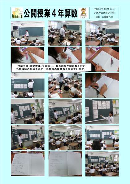 左の配布文書「公開授業(研究授業)」に様子を載せております。ご覧下さい。