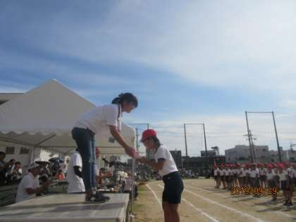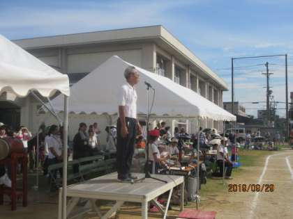 準優勝縦の授与と、PTAから児童への参加賞授与、校長先生のお話です。いっぱい褒めていただきました。