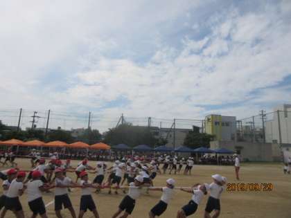 4年生の「棒引き〜スピード&パワー〜」の様子です。力強くみんなで協力してがんばりました。