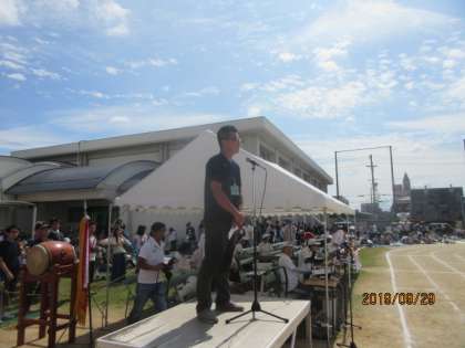 昼食休憩に入る前に、PTA会長福田さんによるあいさつがありました。福田さんが児童たちに声をかけ、児童たちも元気よくあいさつしていました。