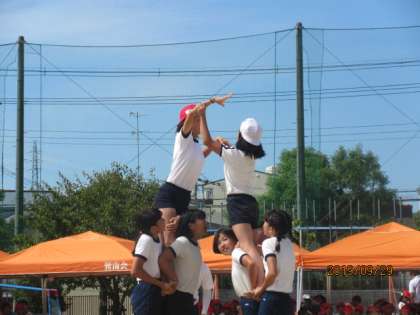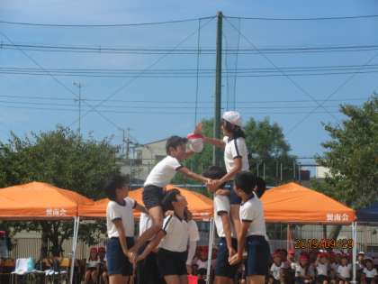 6年生の「進め!攻めろ!奪い取れー!我等の騎馬戦」の様子です。最初は個人戦です。熱い勝負が繰り広げられていました。