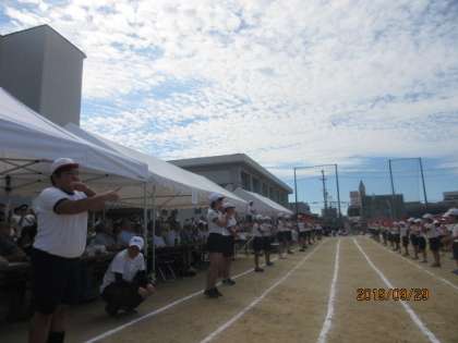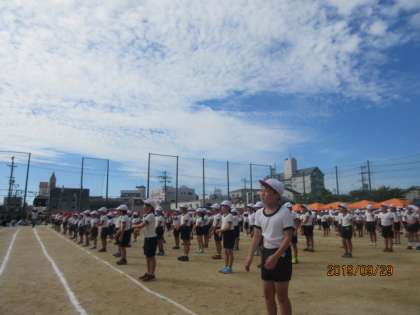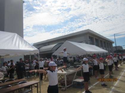 ラジオ体操の様子です。みんな元気よくそろって体操しました。