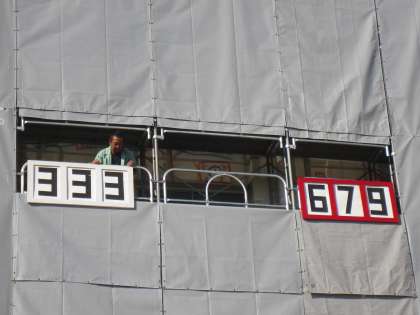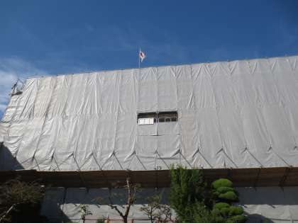 工事の関係上、得点版の位置を変更しております。明日の運動会は紅白どちらが・・・赤組・白組どちらにも応援よろしくお願いいたします。