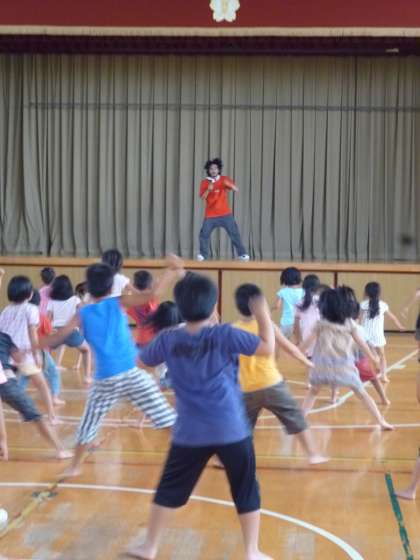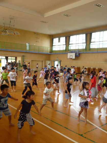 はぐくみ主催の体験プログラム「POPでダンス」が午後から講堂で行われました。いきいき活動に参加している子ども達を中心にたくさんの児童が集まり、インストラクターの指示と音楽に合わせ、楽しく身体を動かしていました。