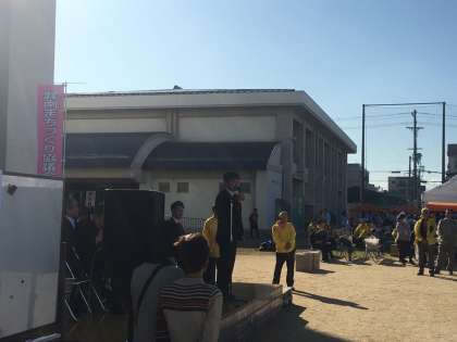 大藤実行委員長の開会宣言により、令和元年ふれあいの集い「わくわくレクリエーション」が始まりました。開会式では、巽南まちづくり協議会の川端理事長の挨拶、生野消防署長の挨拶と続きました。