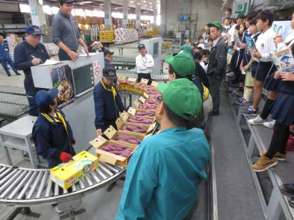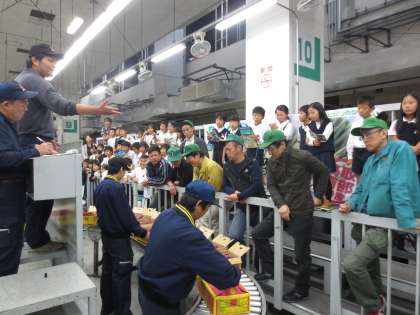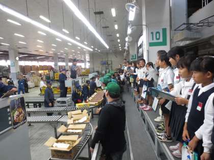 はじめて見る「せり」に、子どもたちは何をしているのか不思議がっていました。【競争で値をつけ、高い値をつけた人に販売する取引方法:せり】