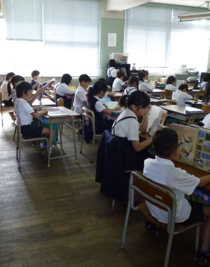 今朝の写真は3年生。朝から運動場で元気に遊んでいた子も、すぐに教室に戻り、本を開いていました。