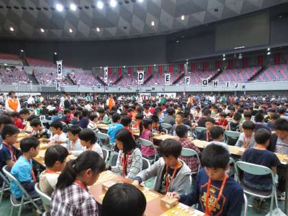 大阪市中央体育館のメインアリーナにて、子ども将棋大会(大阪大会)が行われました。会場には1000人を超す子どもたちが集まり、熱戦を繰り広げていました。会場には詰将棋コーナーもあり、子どもたちは楽しんでいました。今年も巽南小学校から参加があり頑張っていました。地域の将棋道場の諸富さん(巽南第6町会長)も観戦しておられました。来年も大会への参加を期待しています。