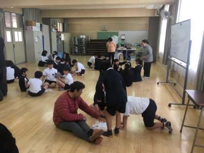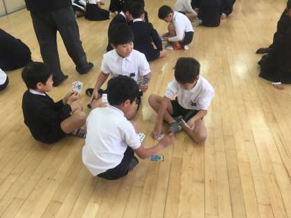 はぐくみネットのコーディネーターをはじめ、ボランティアの方々によるトランプ遊びが20分休みに多目的室にて行われました。