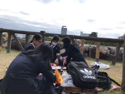 みんなでお弁当を食べています。