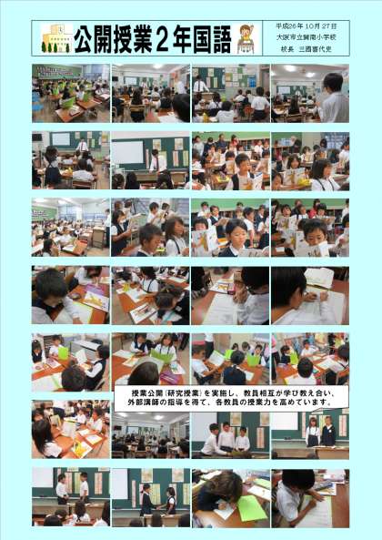 左の配布文書「公開授業(研究授業)」に様子を載せております。ご覧下さい。