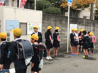 今朝も寒い中、代表委員会の児童たちが元気よく